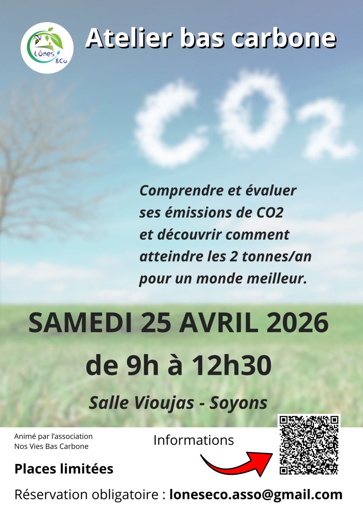 - L'association Lônes &Co vous propose un atelier " BAS CARBONE" le samedi 25 avril de 9h à 12h30, Salle Vioujas à Soyons.