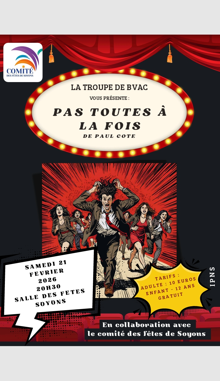 - Au programme, la pièce « Pas toutes à la fois » de Paul Cote.