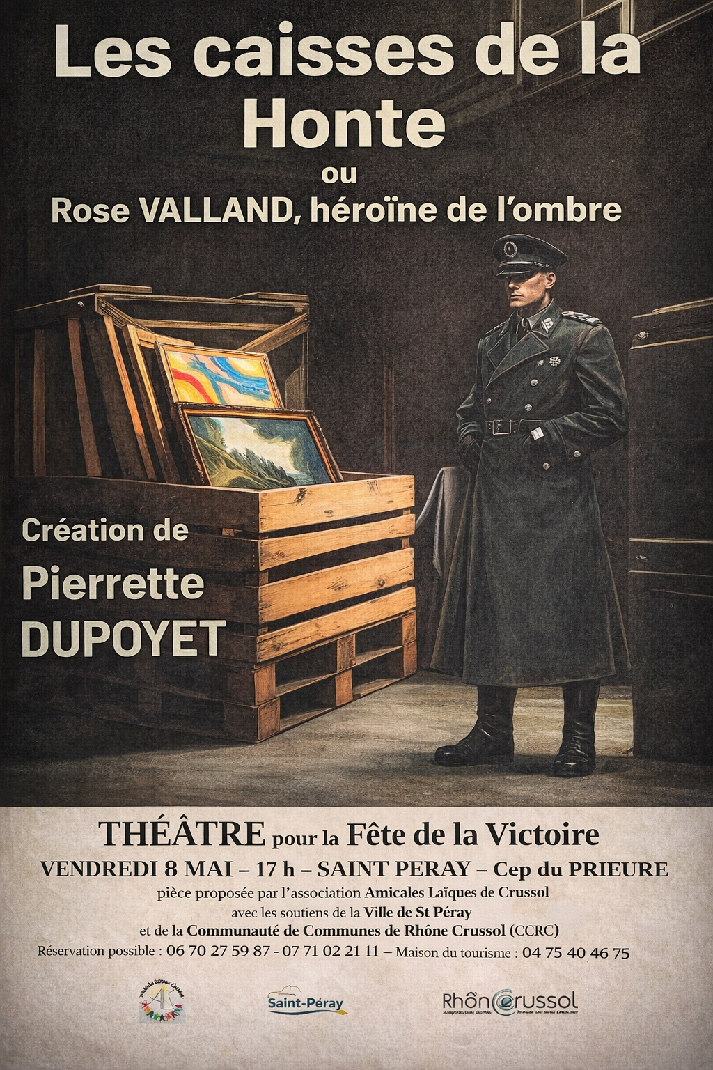 Les Amicales Laïques de Crussol vous proposent la pièce "Les caisses de la Honte ou Rose Valland, héroïne de l'ombre" le vendredi 8 mai à 17h au Cep du Prieuré de Saint-Péray.